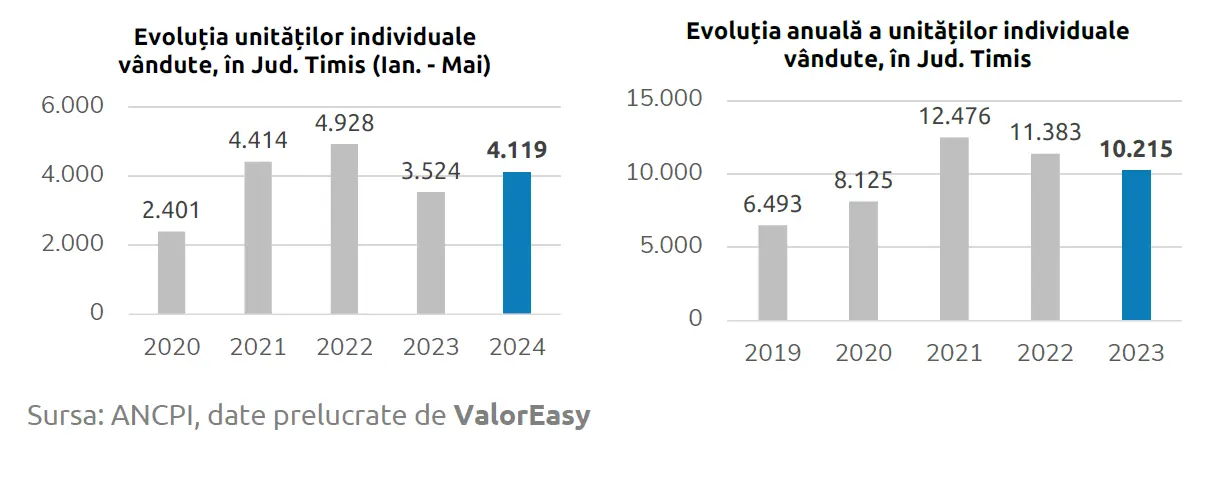 The real estate market in Timiș County experienced remarkable growth during the first five months of 2024, according to data published by the National Agency for Cadastre and Real Estate Advertising (ANCPI). During this period, 4,120 real estate units were transacted in Timiș, representing a significant 17% increase compared to the same period last year, when 3,520 units were sold.