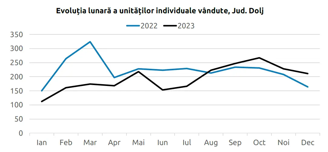 De asemenea, în ultimul trimestru din 2023, s-a înregistrat o creștere semnificativă în volumul tranzacțiilor imobiliare în municipiul Craiova. Conform datelor ANCPI, 706 unități individuale au fost vândute, marcând o creștere de 17,1% față de anul precedent. Această creștere poate fi interpretată ca fiind un semn al revenirii pieței imobiliare în regiune.