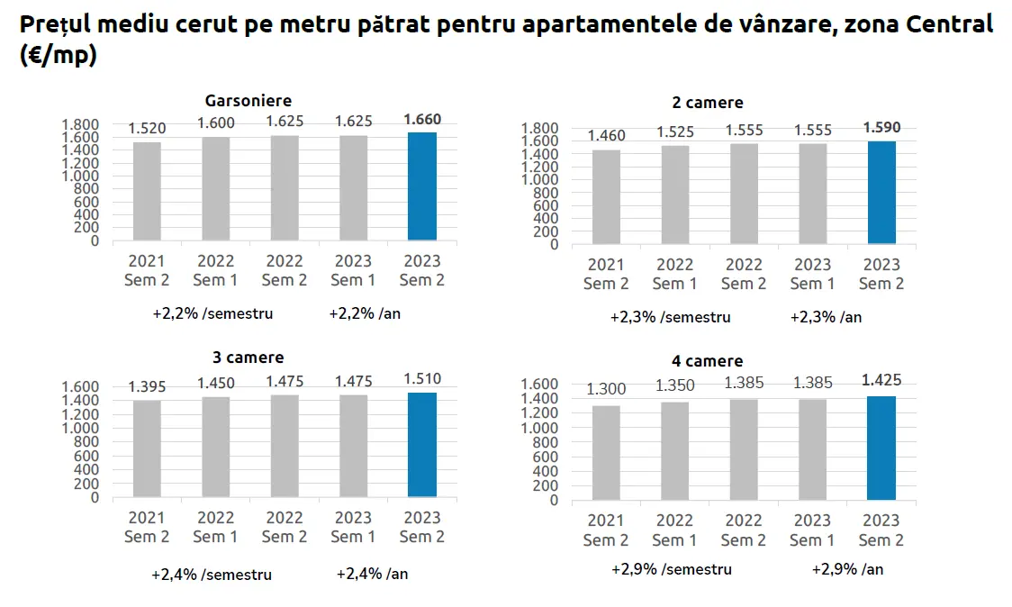 În ceea ce privește prețurile imobiliare, municipiul Craiova a înregistrat o creștere în 2023. Potrivit datelor colectate de ValorEasy, prețul mediu de vânzare al apartamentelor existente în municipiul Craiova a înregistrat o creștere de aproximativ 1,5% comparativ cu anul precedent, ajungând la 1.360 de euro pe metru pătrat util.