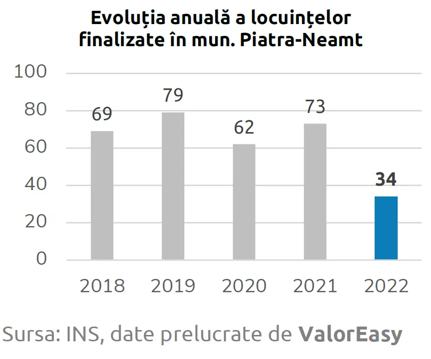 La fel ca și în cazul tranzacțiilor, municipiul Piatra-Neamț a înregistrat o scădere și în livrările de locuințe noi. Această scădere poate reflecta schimbări în cererea și oferta de locuințe în zonă.
